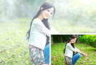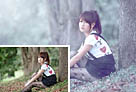 Photoshop为树林静坐的美女调制唯美的淡青色