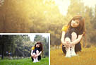 Photoshop为草地上的美女加上晨曦般的柔褐色