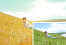 Photoshop为草坡上的美女调出秋季小清新的青黄色