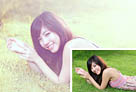 Photoshop为趴在绿草上的美女图片增加朦胧唯美的黄紫色