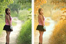 Photoshop为树林中人物图片增加鲜丽的橙褐色