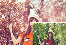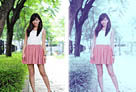 Photoshop为树下的美女图片调制出甜美的粉调青红色