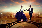 Photoshop合成制作站在拱桥上的华丽夜景婚片