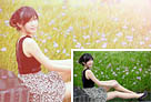 Photoshop为草地上的美女加上小清新的粉黄色