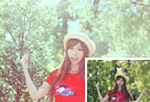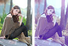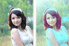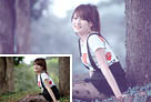 Photoshop为树林美女增加朦胧淡美的中性青红色