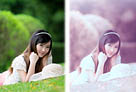 Photoshop将趴在草地上的美女图片增加小清新的粉红色