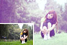 Photoshop将坐在草地上人物图片调制出淡淡的暖紫色