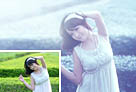 Photoshop将花草中的美女增加上冷艳的淡调青蓝色
