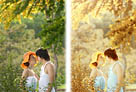 Photoshop将树林情侣图片增加上柔和秋季粉黄色