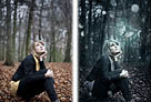 Photoshop将树林美女图片调成甜美的青绿色