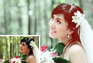 Photoshop将树林婚片打造出甜美的青黄色效果