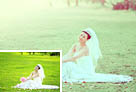 photoshop为草地上的婚纱美女增加甜美的淡绿色
