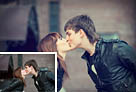 Photoshop将外景亲吻情侣图片打造出经典暗调蓝黄色