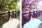 Photoshop将河边美女婚片调成梦幻的紫红色方法