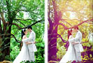 Photoshop将树林婚片增加上柔美的黄紫色效果