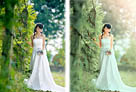 Photoshop给为绿荫中的人物图片调制出韩系淡青色效果