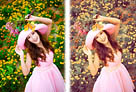 Photoshop将草地美女图片调制出流行的欧美粉褐色效果