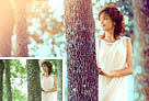 Photoshop将树林美女图片调制出甜美的粉绿色效果