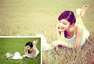 Photoshop为草地美女图片调制出柔和的粉黄色效果