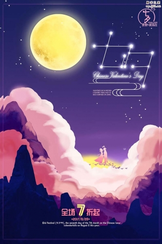 ps怎么设计夜色主题的七夕情人节商场促销海报?