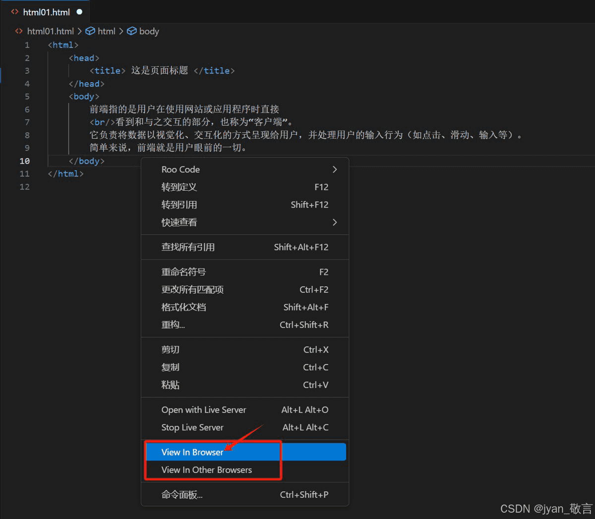 View in Browser 插件是一个轻量级的前端开发工具,主要用于 快速在浏览器中预览 HTML 文件,并支持实时刷新功能。在使用其他方法预览时步骤繁琐,比如手动保存后切换到浏览器刷新页面,这时,使用该插件就便利很多。