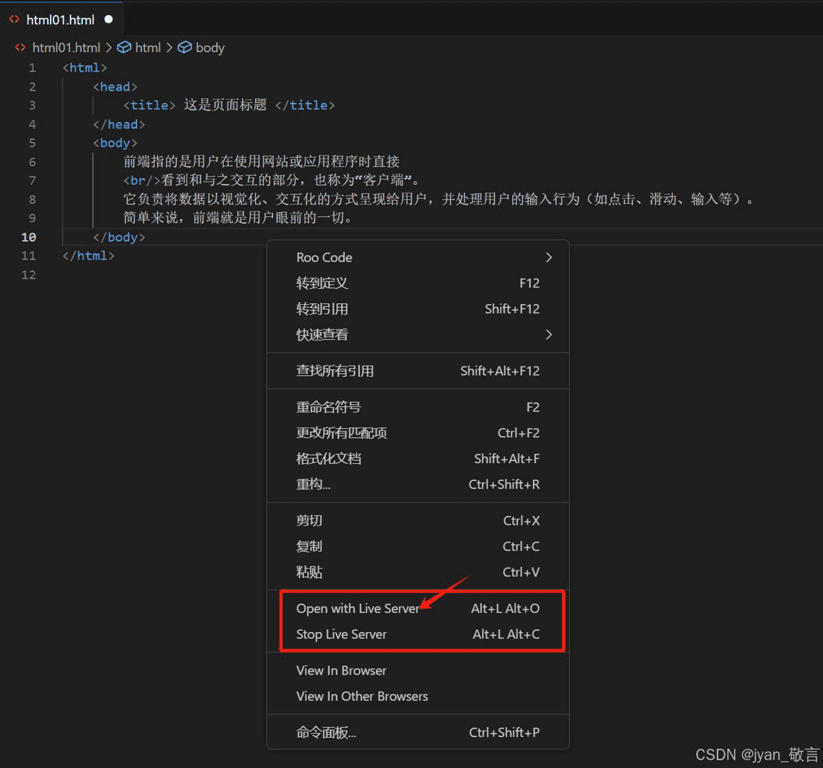 点击“Open whirh Live Server”选项后,会直接在浏览器上显示更新内容。