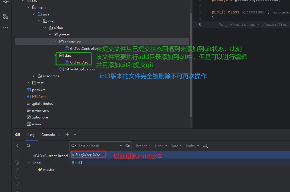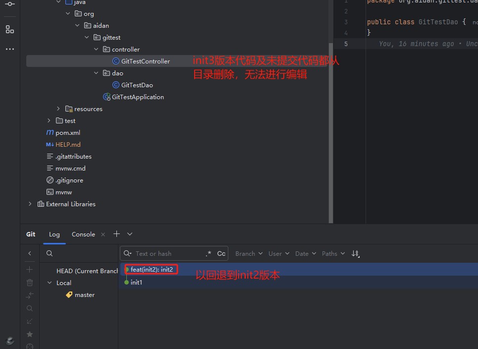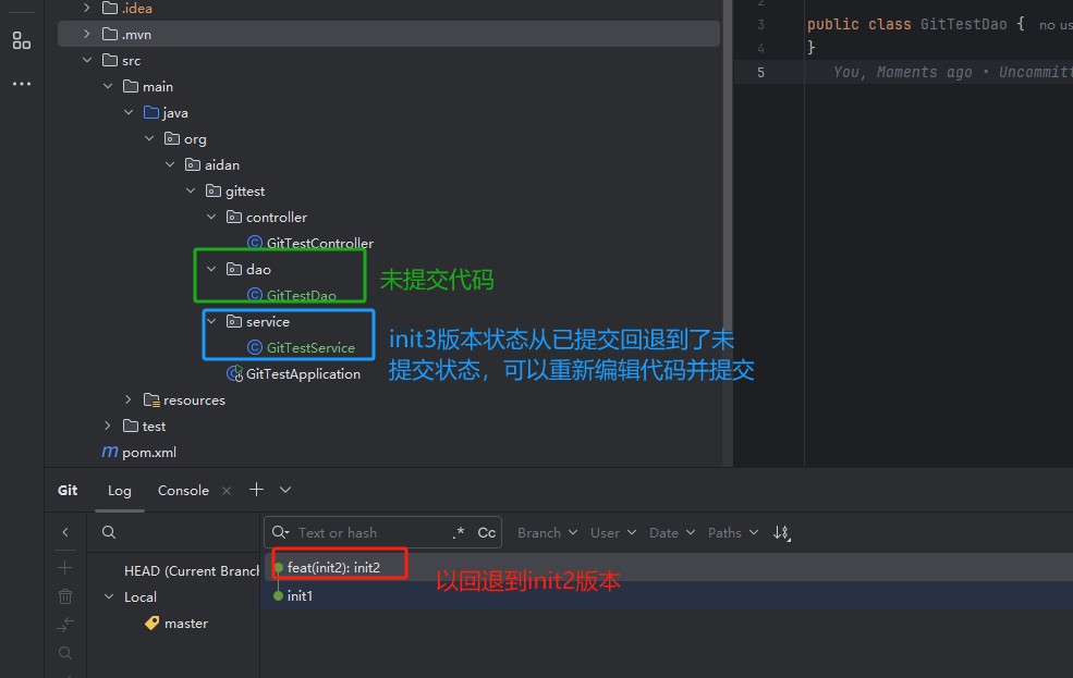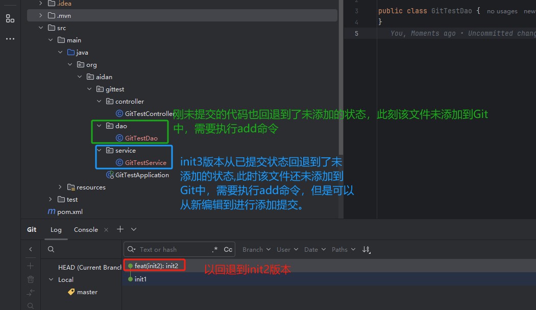 使用Hard 命令进行回滚到init2版本