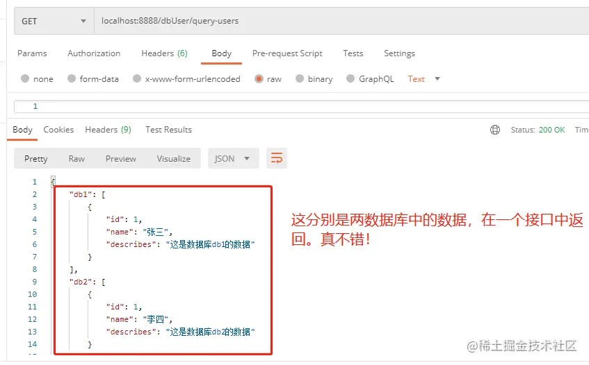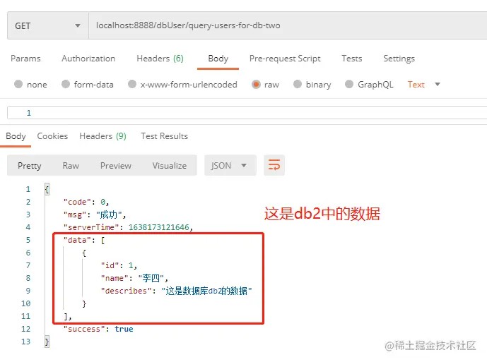 再做个测试,我们把db1与db2中的数据同时返回,看看能否成功: