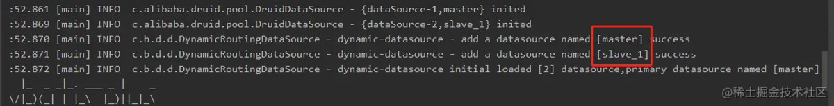 配置好配置环境后,先启动下项目,查看库是否都正常连接。如下控制台启动打印的日志,表示两库都正常连接。