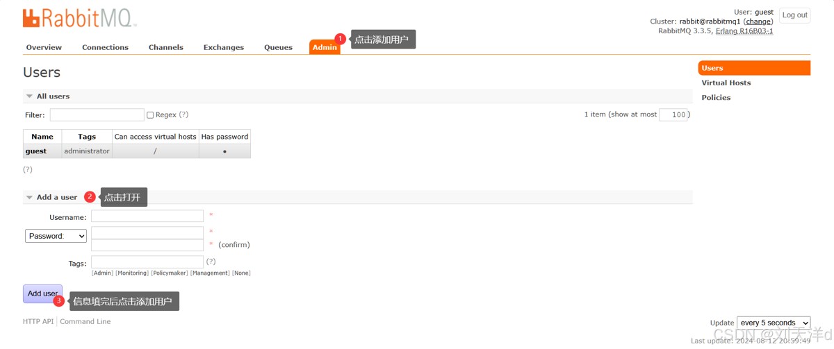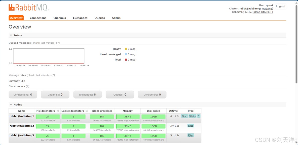 如:192.168.152.71:15672,默认的用户名:guest,密码:guest