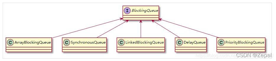5、BlockingQueue<Runnable> workQueue:用于保存等待执行的任务的阻塞队列接口,java提供了以下实现类:
