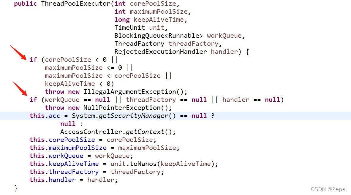 ThreadPoolExecutor提供了很多构造方法,这里主要说以下这个,其他构造方法都是基于此方法: