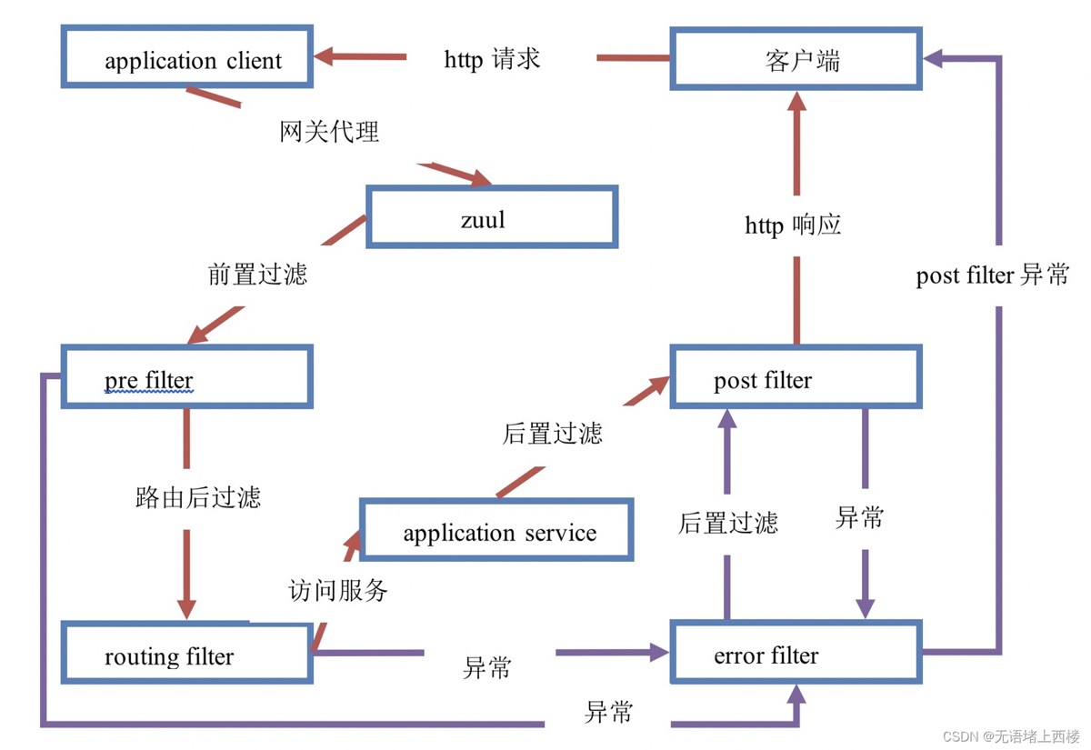 - 路由后过滤:是请求进入Zuul之后,并Zuul实现了请求路由后执行的过滤逻辑,路由后过滤,是在远程服务调用之前过滤的逻辑。