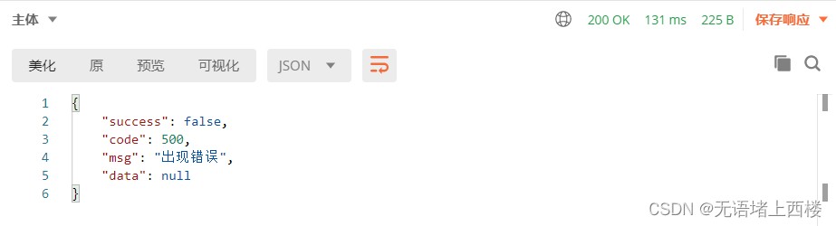 全局异常捕获是一种处理应用程序中未处理的异常的机制,它可以统一处理应用程序中的异常,避免异常导致程序崩溃或向用户显示不友好的错误信息。我们可以通过上述的解释去捕获异常,定义code类型枚举返回ResponseResult给前端