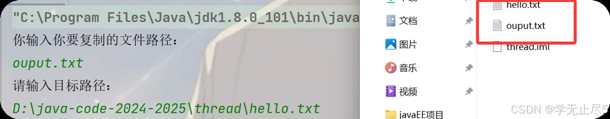 需求:输入源文件路径和目标路径,实现文件复制(支持所有文件类型,比如文本、图片)。