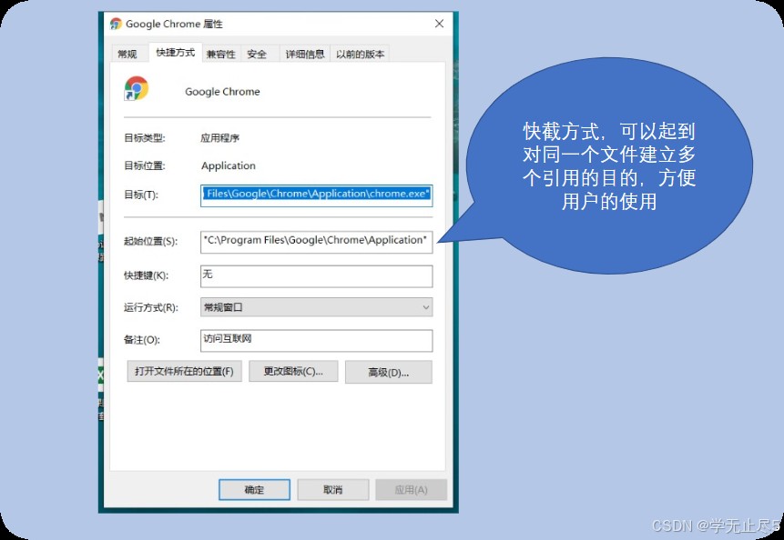 在Windows操作系统上,还有一类文件比较特殊,就是平时我们看到的快捷方式(shortcut),这种文件只是对真实文件的一种引用而已。其他操作系统上也有类似的概念,例如软链接(soft link)等。