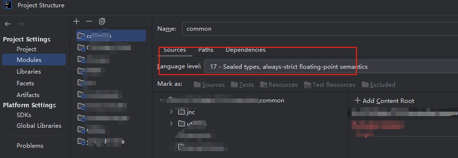 各个Module的Language Level