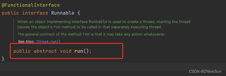 原因就在于Runnable,追踪到它的原码不难发现它是一个函数式的接口