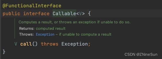 通过源码不难发现Callable也是一个函数式接口,里面提供了一个无参的call方法,并且提供了返回值