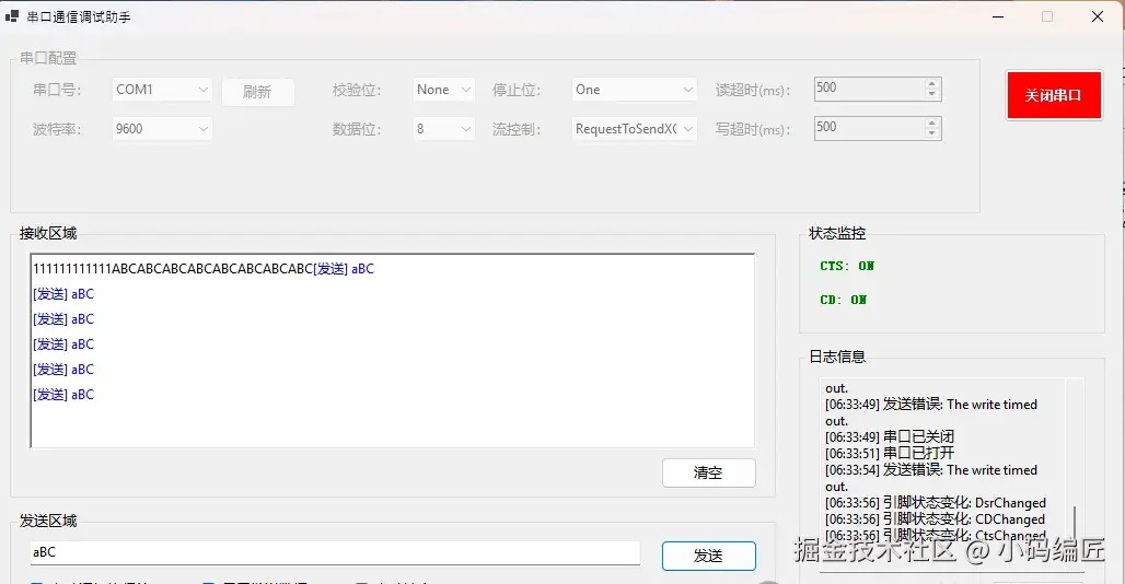 通过对 SerialPort 类的详细解析,本文展示了如何在 WinForm 环境下正确设置串口参数、打开关闭串口以及处理常见的异常情况。合理的异常捕获、线程安全机制以及 UI 数据更新策略,不仅提高了应用的稳定性,也为编写高质量串口通信程序提供了有效的技术支持。
