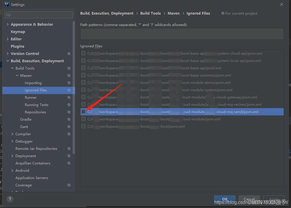 项目中的pom.xml文件被设置在maven忽略清单中