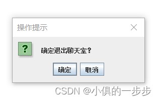 JOptionPane.showConfirmDialog(null,"确定退出聊天室?","操作提示",JOptionPane.OK_CANCEL_OPTION);