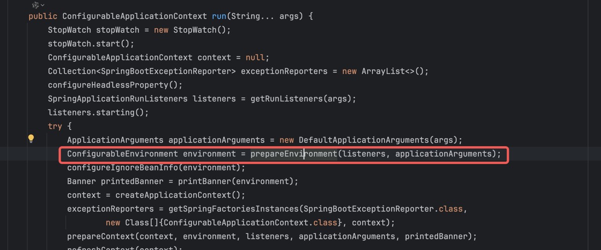 ConfigurableEnvironment environment = prepareEnvironment(listeners, applicationArguments);