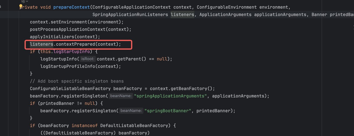 prepareContext(context, environment, listeners, applicationArguments, printedBanner);