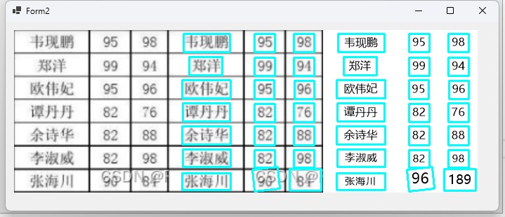 运行程序,选择一张包含表格的图片,识别后弹出 Form2,可以看到: