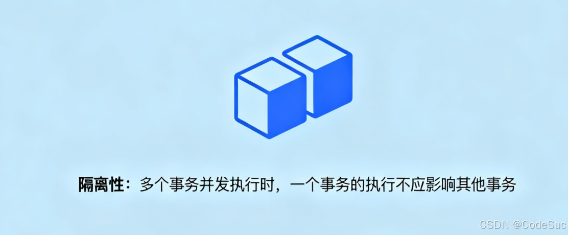 隔离性是指多个事务同时并发执行时,一个事务的执行过程不会被其他事务干扰,各个事务之间相互隔离,如同在独立的环境中执行一样。如果事务之间没有隔离性,多个并发事务操作同一批数据时,可能会出现脏读、不可重复读、幻读等问题,从而破坏数据一致性。
