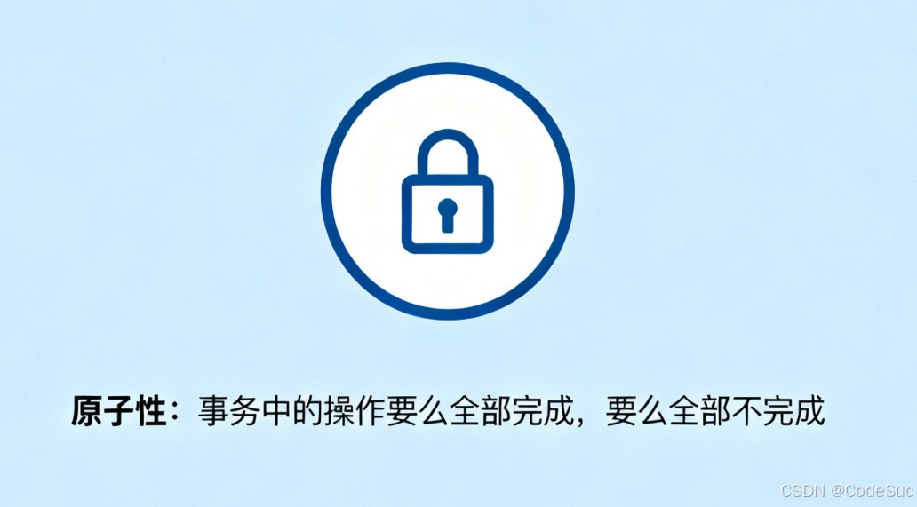 原子性是指事务中的所有操作是一个不可分割的整体,如同“原子”一样不可再分。事务的原子性要求:要么事务中的所有操作都执行成功并提交,要么所有操作都执行失败并回滚,不存在“部分成功、部分失败”的情况。