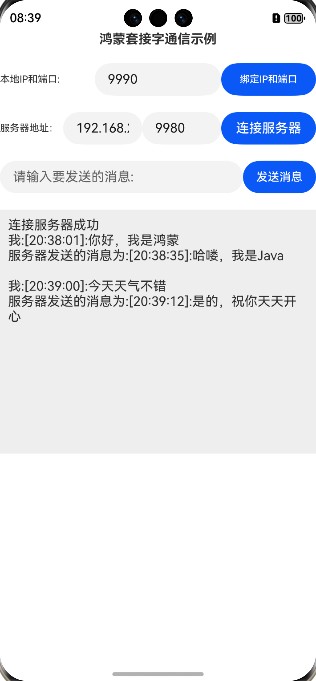 到此这篇关于鸿蒙与Java跨平台Socket通信实战的文章就介绍到这了,更多相关鸿蒙与Java跨平台Socket通信内容请搜索脚本之家以前的文章或继续浏览下面的相关文章希望大家以后多多支持脚本之家!