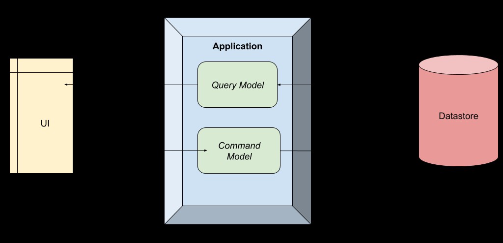 对比一下常用的 CRUD 模式(创建-读取-更新-删除),通常我们会让用户界面与负责所有四种操作的数据存储交互。而 CQRS 则将这些操作分成两种模式,一种用于查询(又称 "R"),另一种用于命令(又称 "CUD")。