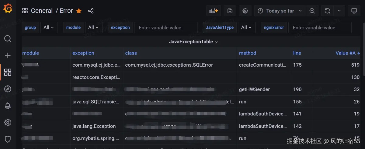 - 有效:通过每天进行java异常巡检,能够有效的发现线上的异常,包括业务问题和组件问题,都能第一时间发现。同时也能有效的协助排查问题,比如线上出问题了,你看下java异常监控,就能知道是什么服务在报错,甚至可能可以直接根据异常锁定错误原因。